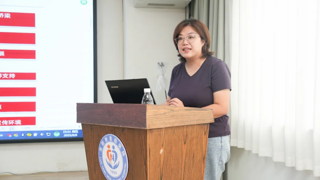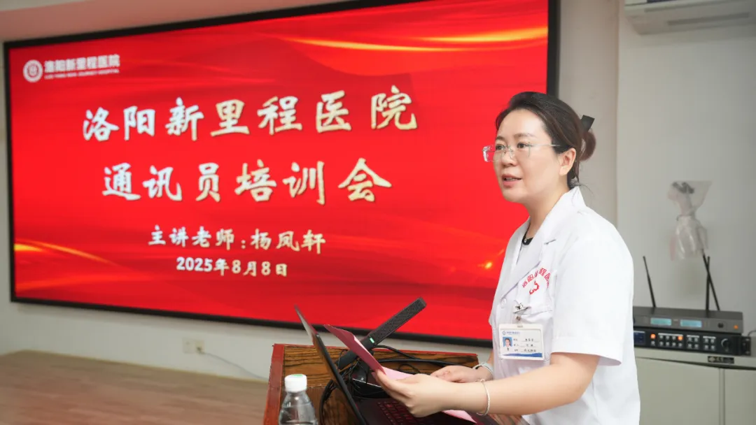 培训伊始,院长助理王芬芬发表致辞。她首先代表院领导班子对洛阳日报社杨凤轩主任一行的到来表示热烈欢迎,对各位通讯员在科室宣传和医院形象塑造上的辛勤付出表示肯定。她指出:"当前融媒体时代,医疗信息与健康科普的传播面临新挑战,也迎来新机遇。今天的培训正是我们主动拥抱变革、提升宣传能级的重要举措。"