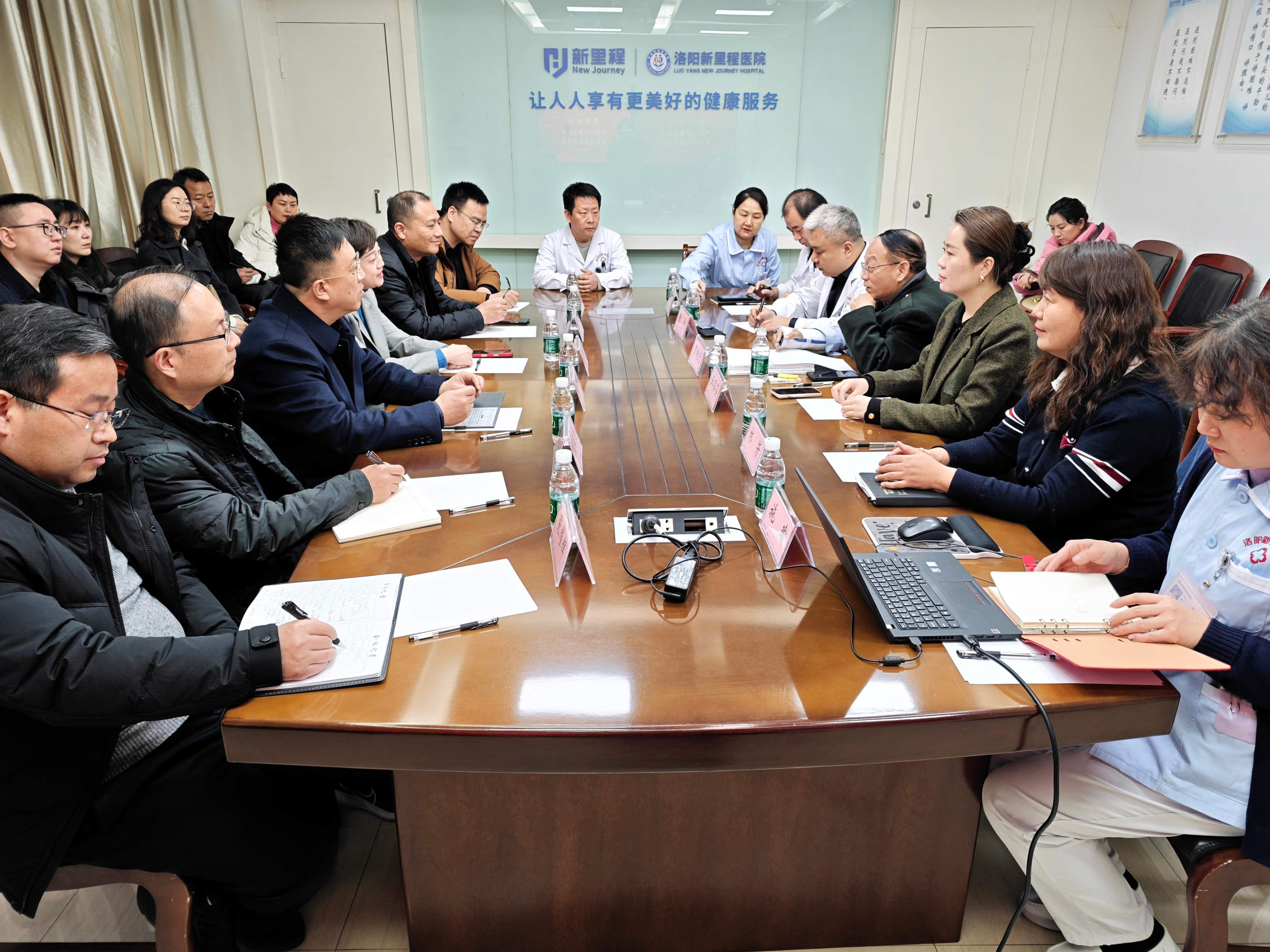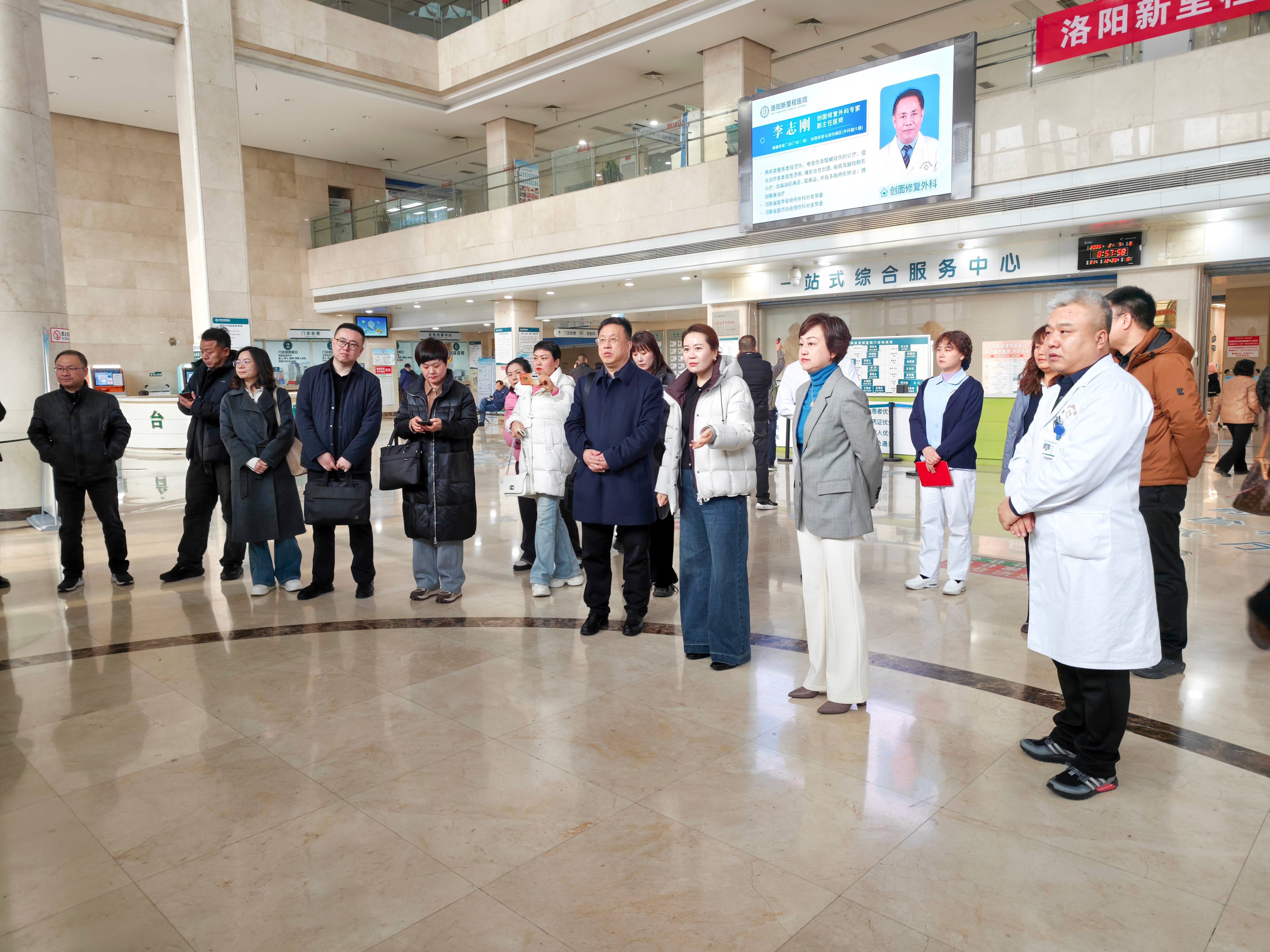 为深化互动、互学互鉴,推动学科建设与精细管理经验的深度融合,共筑医院协同发展的新动能,2月7日,在新里程健康集团助理总裁张雨培带领下,平顶山河舞总医院院长李学冬等一行15人莅临洛阳新里程医院开展参观调研活动,洛阳新里程医院院长贺向无,院长助理王芬芬、张伟等陪同调研。